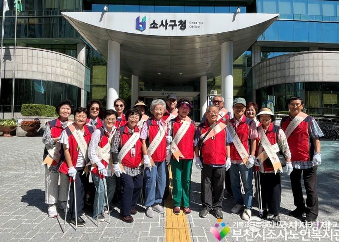 한국시사경제 경기취재본부 | 부천시소사노인복지관은 9월 11일 오전, 노인자원봉사단 ‘시민지킴이’ 16명과 함께 복지관이 위치한 소사구청 일대를 시작으로 소사본동 일부 구간까지 환경정화 활동 ‘줍깅’을 실시했다.