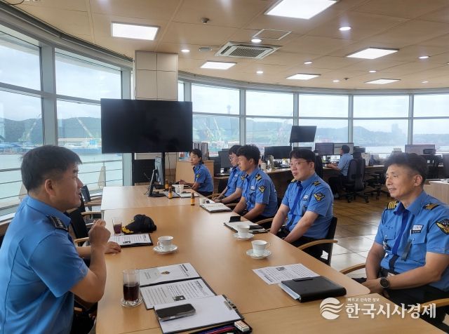 한국시사경제 김숙영 기자 | 울산해양경찰서는 12일 태풍내습기 울산항 내 선박 충돌, 좌초 등 각종 해양사고 예방을 위해 울산항 해상교통관제센터(VTS)를 방문했다.