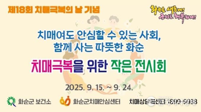 한국시사경제 윤경수 기자 | 화순군은 제18회 치매 극복의 날(9. 21.)을 맞아 오는 15~24일까지 치매 극복 주간으로 정하고 치매여도 안심할 수 있는 사회를 만들기 위해 다양한 행사를 개최한다.
