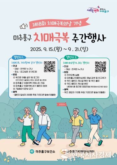 한국시사경제 윤경수 기자 | 미추홀구 치매안심센터(센터장 차남희)는 제18회 치매 극복의 날을 맞아 오는 15일부터 7일간 ‘치매 극복 주간 행사’를 진행한다.