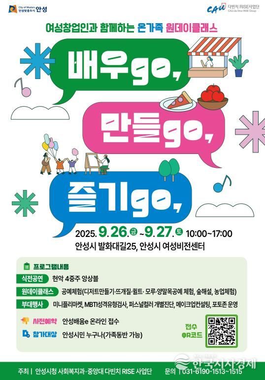 한국시사경제 경기취재본부 | 안성시는 오는 9월 26일부터 27일까지 양일간, 여성창업플랫폼 ‘꿈마루’의 디딤돌 강사양성반을 통해 배출된 강사들과 함께하는 “원데이 클래스” 행사를 여성비전센터에서 개최한다고 밝혔다.