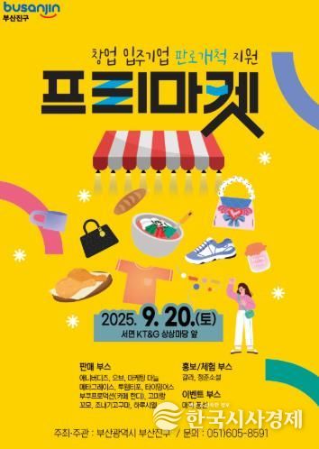한국시사경제 부산취재본부 | 부산진구는 9월 20일 서면 KT&G 상상마당 앞에서 13시부터 18시까지 ‘2025 창업 입주기업 판로개척 지원 프리마켓’을 개최한다고 밝혔다.