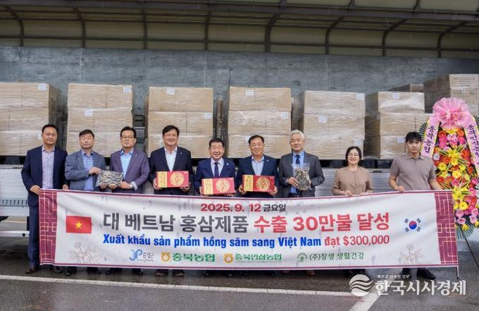 한국시사경제 충북취재본부 | 충북 증평군의 대표 특산물인 인삼 제품이 베트남 수출길에 올랐다.