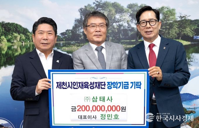 한국시사경제 충북취재본부 | 제천시는 지난 12일 장락동 ‘세영리첼 에듀퍼스트 아파트’시행사인 ㈜삼태사가 제천시인재육성재단에 2억 원의 장학금을 기탁했다고 밝혔다.
