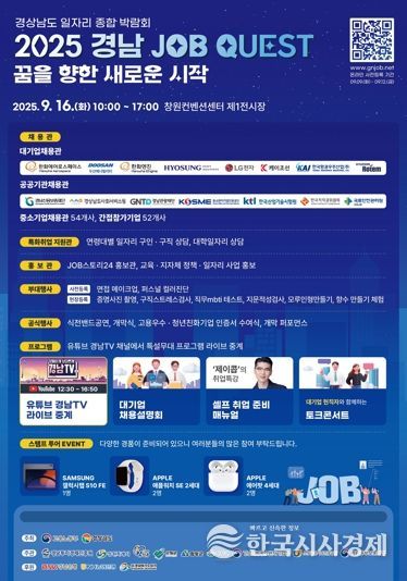 한국시사경제 윤경수 기자 | 창원특례시는 오는 9월 16일 창원컨벤션센터 제1전시장(CECO)에서 일자리 박람회 『2025 경남 JOB QUEST』 개최를 통해 지역 일자리 확보 및 취업 지원을 더욱 강화할 계획이다.