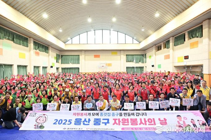 한국시사경제 울산취재본부 | (사)울산중구자원봉사센터(이사장 박민호)가 9월 13일 오전 9시 양사초등학교 체육관에서 ‘2025 울산 중구 자원봉사의 날’ 기념식 행사를 열었다.
