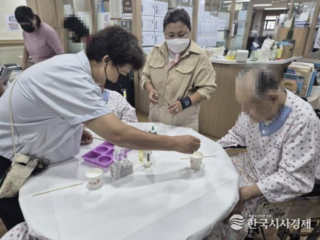 한국시사경제 충북취재본부 | 바하충주시발달장애인 주간활동센터는 충주 삼성요양원에서‘비누 만들기 및 나눔’ 지역사회 연계 활동 프로그램을 진행했다고 15일 밝혔다.