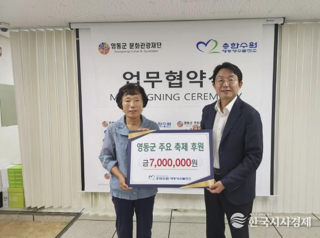 임정묵 소장은 “영동에서 시행하는 중요 축제에 영동양수건설소가 조금이나마 도움이 되고자 후원을 준비했으며, 앞으로도 지역의 발전과 군민과의 상생을 위해 더욱 노력하겠다”라고 밝혔다.