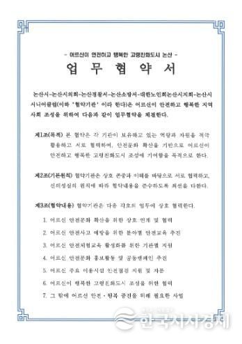 이들 기관은 전국적으로 증가하는 어르신 사고에 대응하고 고령친화도시 논산을 조성하기 위해 함께 협력해 나가기로 약속했다.