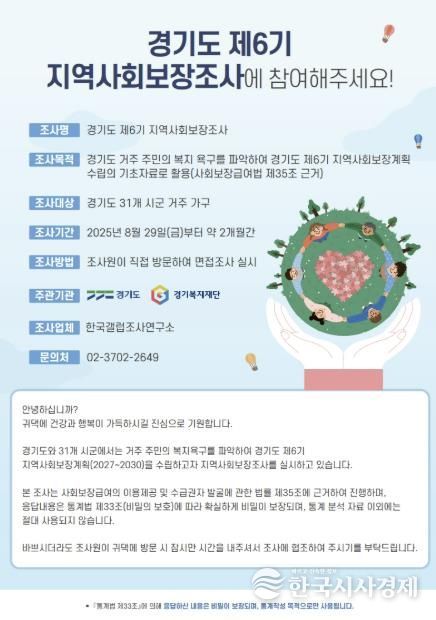 한국시사경제 경기취재본부 | 시흥시는 9월 15일부터 10월 31일까지 경기도 및 경기도복지재단과 함께 1,975가구를 대상으로 ‘2025년 경기도 지역사회보장조사’를 실시한다.