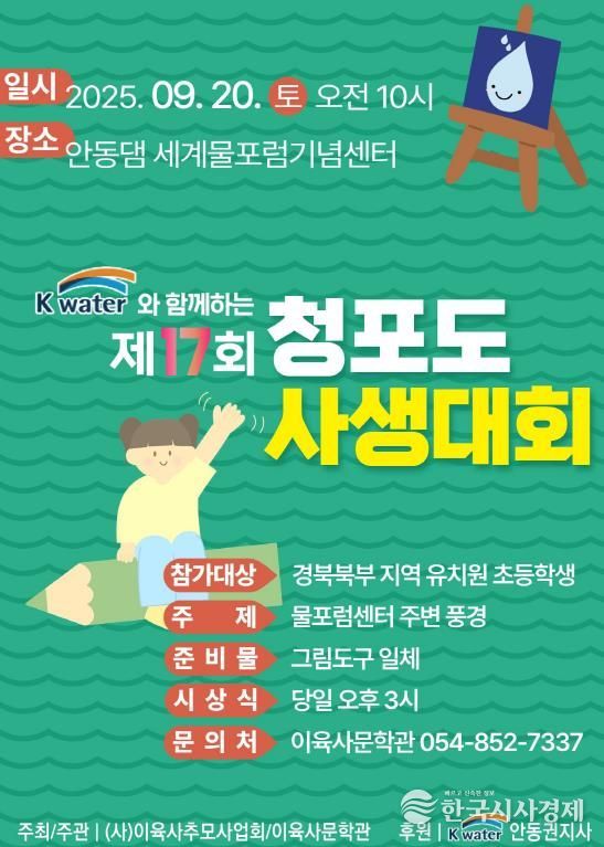 한국시사경제 경북취재본부 | K-water가 후원하고 (사)이육사추모사업회가 주최, 이육사문학관이 주관하는 '제17회 청포도 사생대회'가 오는 9월 20일(토) 오전 10시, 세계물포럼기념센터에서 열린다.