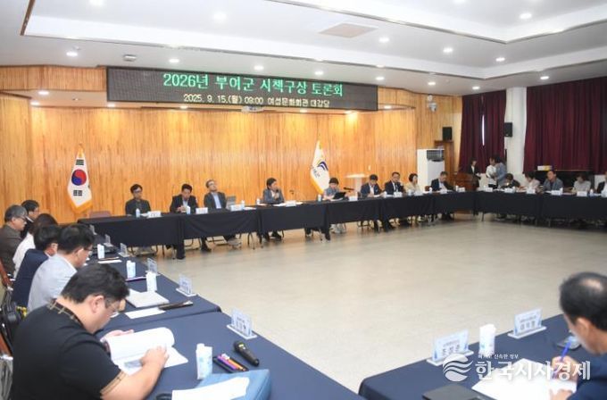 군은 지난 15일 부여군 여성문화회관에서 박정현 군수를 비롯해 부군수, 국·과·소장, 담당관, 분야별 외부 전문가 10여 명 등 총 60여 명이 참석해 ‘2026년 시책 구상 토론회’를 열고, 각 부서에서 발굴한 신규 시책을 공유하는 자리를 가졌다.