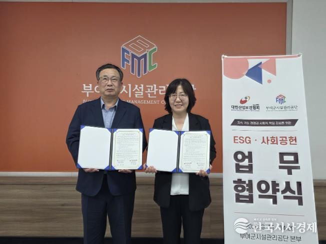 한국시사경제 김태훈 기자 | 부여군시설관리공단은 대한산업보건협회와 ESG 경영 및 사회공헌 활동 강화를 위한 업무협약(MOU)을 체결했다고 16일 밝혔다.