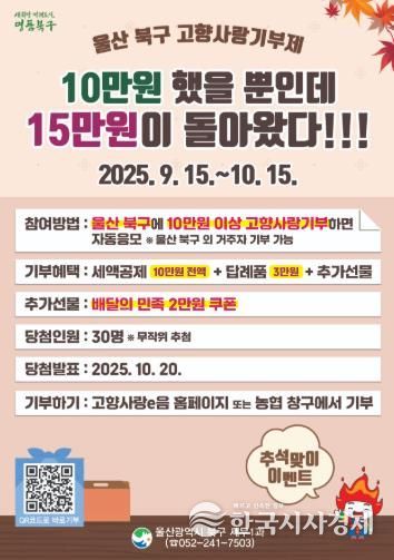 한국시사경제 울산취재본부 | 울산 북구는 추석을 맞아 고향사랑기부제 이벤트를 실시한다고 16일 밝혔다.