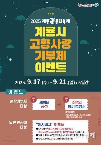 2025계룡軍문화축제의 성공적인 개최를 기원하고 고향사랑기부제 홍보 및 참여 확산을 위해 마련된 이번 이벤트는 축제 기간인 이달 17일부터 21일까지 5일간 진행된다.