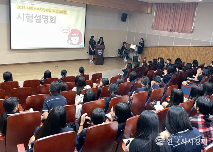 한국시사경제 한장선 객원기자 | 제주도교육청 서귀포여자중학교는 12일 본교 시청각실에서 학생자치회 주관 1학년 시험 설명회를 열었다.
