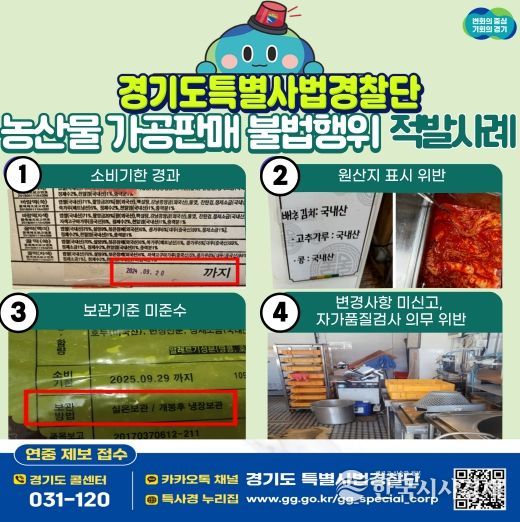 기이도 경기도 특별사법경찰단장은 “도민 안전과 건강에 위해가 되는 불법행위를 사전에 예방하고, 단순한 법 집행을 넘어 도민을 지키는 든든한 파수꾼이 되고자 한다. 이것이 수사의 최종목적”이라며 “도민 여러분께서는 식품을 구매할 때 소비기한과 원산지를 꼼꼼히 확인해 주시고, 의심스러운 점이 있을 때는 신고해 달라. 우리 모두가 함께 지켜야만 진정한 식품 안전이 실현될 수 있다”고 말했다.