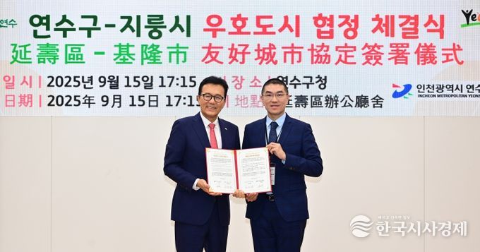 한국시사경제 윤광희 기자 | 연수구와 대만 지룽시(시장 셰궈량謝國樑)가 우호도시 협약을 체결하고, 해양도시 간 국제 교류사업을 본격화했다.
