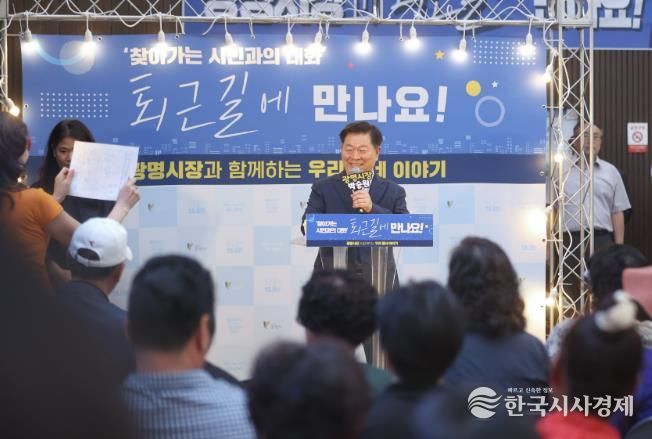 박 시장은 지난 14일 오후 6시 30분 광명사거리역 쉼터에서 열린 ‘찾아가는 시민과의 대화-퇴근길에 만나요!’에서 퇴근길 시민 100여 명 소통했다.