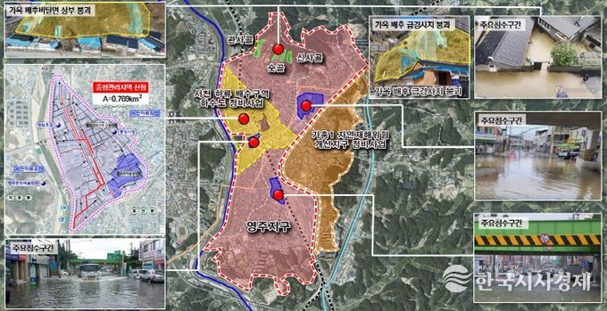 영주지구의 경우 사업비 496억 원을 투입해 영주동·휴천동 구시가지 일원에 호우 시 구시가지 우수를 서천으로 신속히 배제하는 시설인 배수암거 2.1㎞를 신설하고, 우수관로 4.5㎞와 사면 2.4㎞를 정비할 예정이다.