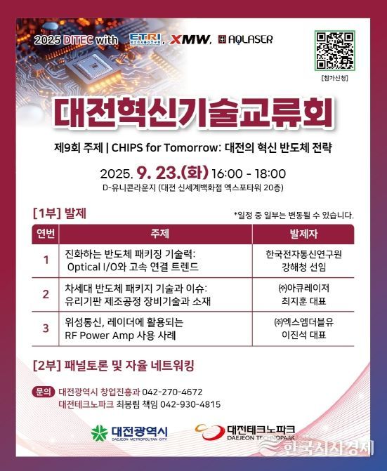 이번 교류회는 ‘CHIPS for Tomorrow: 대전의 혁신 반도체 전략’을 주제로, 한국전자통신연구원(ETRI)과 반도체 산업 분야 기업들이 함께 모여 대전의 6대 전략산업 중 하나인 반도체 산업의 발전 방향을 논의한다.