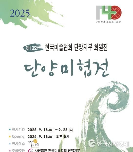 올해로 13회를 맞는 이번 회원전은 그간의 성과를 집약적으로 보여주는 자리이자, 단양의 문화예술 역량을 대외적으로 알리는 계기가 될 것으로 기대된다.