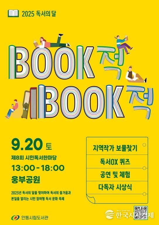 한국시사경제 경북취재본부 | 안동시립도서관이 ‘9월 독서의 달’을 맞아 9월 20일 오후 1시부터 6시까지 웅부공원에서 『제8회 Book적 Book적 시민독서한마당』을 개최한다.