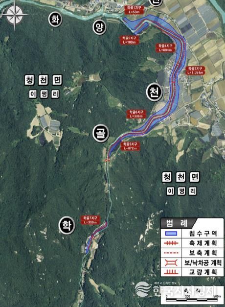 학골지구에는 2029년까지 4년간 123억 원을 투입해 청천면 송면리~이평리 구간 소하천 3.42㎞ 정비, 교량 4개소 재가설, 가동보 1개소 설치가 진행된다.