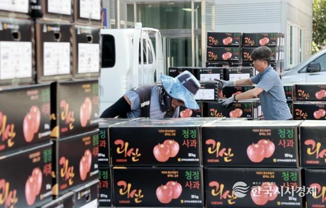 한국시사경제 충북취재본부 | 민족 최대 명절 한가위를 보름여 앞둔 17일, 충북 괴산군 연풍면 사과밭은 이른 아침부터 분주했다.