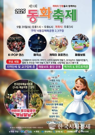 한국시사경제 경북취재본부 | 구미시와 경상북도가 후원하는 ‘2025 제9회 동화축제’가 9월 20일 오후 1시부터 6시까지 구미 낙동강체육공원 2·3구장에서 열린다.