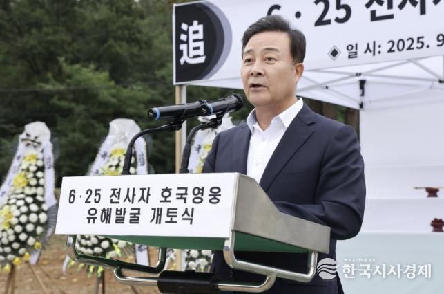 한국시사경제 문화팀 | 김성제 의왕시장이 9월 16일 모락산 유격장에서 개최된 ‘6.25 전사자 유해발굴 개토식’에 참석했다.