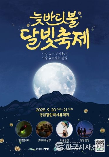 한국시사경제 윤광희 기자 | 영암군이 20~21일 군서면 왕인박사유적지에서 ‘2025 영암 늦반딧불 달빛축제’를 개최한다.