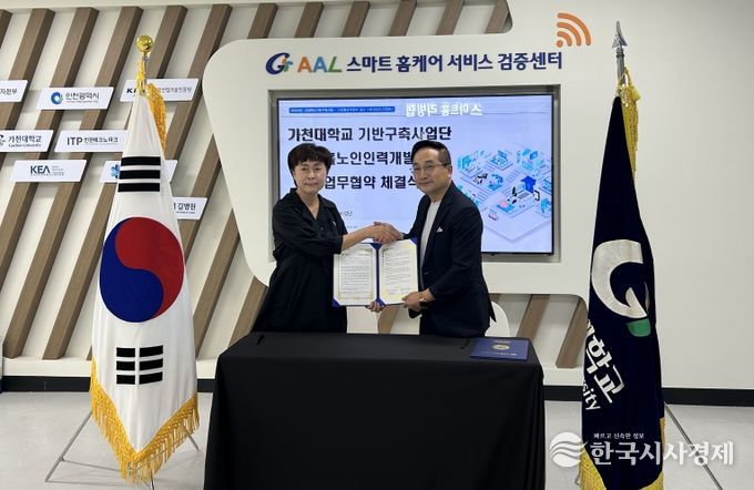 한국시사경제 윤광희 기자 | 인천 미추홀노인인력개발센터(센터장 김태화)는 지난 16일 가천대학교 기반구축사업단(단장 이은석)과 ‘취약계층 친화적 지능형 홈케어 서비스 개발 및 실용화 기반 구축과 노인 일자리 창출’을 위한 업무협약을 체결했다.