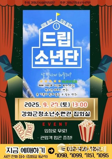 한국시사경제 문화팀 | 강화군시설관리공단(이사장 박영길) 청소년수련관이 오는 27일 오후 1시, 청소년수련관 집회실에서 청소년 진로 탐색 연극 '드립소년단' 초청 공연을 개최한다.