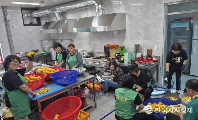 한국시사경제 경기취재본부 | 지난 16일, 안성시 서운면행정복지센터가 새콤달콤한 향기로 가득 찬 특별한 행사의 현장이 됐다. 안성시새마을회 주관으로 15개 읍면동의 새마을지도자회장과 부녀회장 등 약 30여 명의 자원봉사자들이 모여 불우이웃돕기 성금 마련을 위한 '사랑의 레몬청 담그기' 행사를 성공적으로 진행했다. 이날 봉사자들의 정성이 모여 무려 1,000kg에 달하는 대규모 레몬청이 제작됐다.