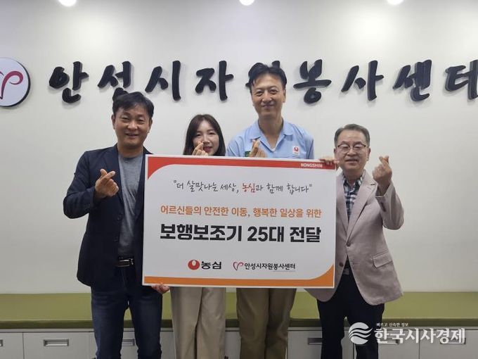 ㈜농심 안성공장은 저소득층 어르신들을 위해 25대의 보행 보조기를 안성시자원봉사센터에 전달했으며, 이는 거동이 불편해 어려움을 겪는 어르신들의 생활 편의와 안전을 높이는 데 쓰인다.