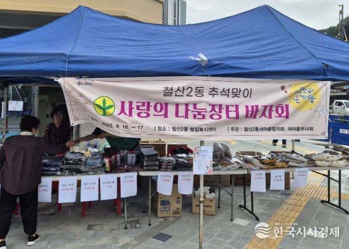한국시사경제 경기취재본부 | 광명시 철산2동 새마을지도자협의회·부녀회는 지난 16일부터 17일까지 이틀간 센터 청사 앞에서 추석맞이 행복 나눔 바자회를 개최했다.