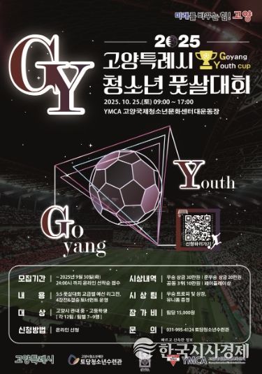 한국시사경제 윤광희 기자 | 고양시청소년재단 토당청소년수련관은 오는 10월 25일 YMCA 고양국제청소년문화센터 대운동장에서 ‘2025 고양특례시 청소년 풋살대회(GY컵)’를 개최한다고 밝혔다.