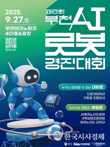 한국시사경제 경기취재본부 | 부천시와 부천산업진흥원은 오는 9월 27일, 부천테크노파크 401동 및 광장에서'제8회 부천AI로봇경진대회'를 개최한다. 이번 대회는 ‘피지컬AI(Physical AI)’를 핵심 주제로, 인공지능 기술과 실제 로봇의 융합 역량을 겨루는 장으로 마련된다.