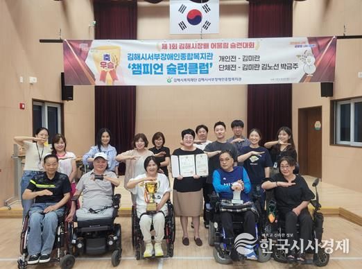 한국시사경제 문화팀 | (재)김해시복지재단 김해시서부장애인종합복지관 소속 슐런클럽 ‘챔피언’ 회원들이 지난 10일 김해실내체육관에서 열린 ‘제1회 김해시장배 어울림 슐런대회’에서 개인전 1위와 단체전 1위를 모두 차지했다고 밝혔다.