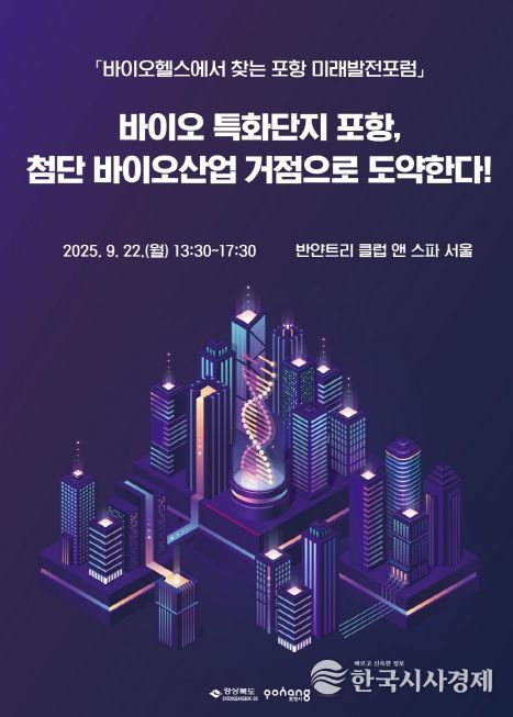 한국시사경제 오영주 기자 | 포항시는 경상북도와 공동으로 오는 9월 22일 오후 1시 30분, 서울 장충동 반얀트리 호텔에서 ‘2025 바이오헬스에서 찾는 포항 미래발전포럼’을 개최한다.