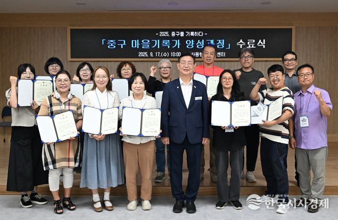 한국시사경제 대전취재본부 | 대전 중구는 17일 대사동 복합커뮤니티센터에서‘2025, 대전 중구를 기록하다 '중구 마을기록가 양성과정'’수료식을 개최했다고 밝혔다.