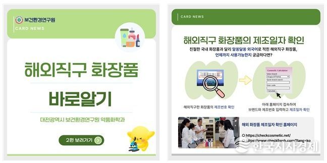 한국시사경제 대전취재본부 | 대전시 보건환경연구원은 시민 우려가 높은 해외직구 화장품을 대상으로 안전성 검사를 실시한 결과, 조사 대상 대부분이 국내 안전기준에 적합한 것으로 확인됐다고 9월 18일 밝혔다.