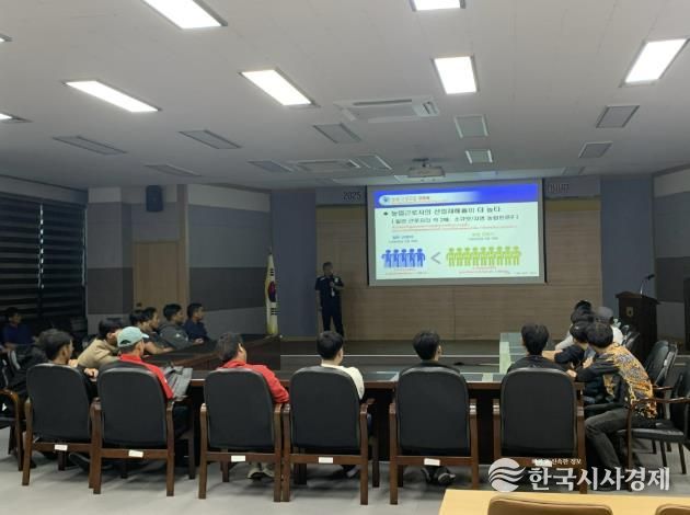 이번 교육은 농업 현장에서 발생할 수 있는 안전사고를 예방하고 외국인 근로자의 안전의식을 높이기 위해 마련됐으며, 교육에는 박찬규 농작업안전관리관이 강사로 참여하여 농작업 안전의 기본 개념과 이해, 농작업 5대 기본수칙 등을 중심으로 강의와 사례 설명을 진행했다.