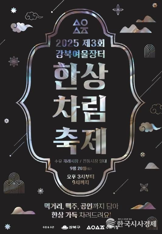 한국시사경제 이정이 기자 | 서울 강북구는 오는 9월 20일 오후 3시부터 저녁 9시까지 수유재래시장과 전통시장 일대(도봉로67길, 도봉로71길)에서 ‘강북 여울장터 '수유 한상차림 축제 둘째마당'’을 개최한다.