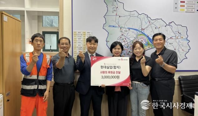 한국시사경제 경기취재본부 | 시흥시 생활폐기물 수집ㆍ운반업체인 ㈜현대실업은 지난 9월 17일 추석 명절을 앞두고 대야동 마을자치과에 후원금 300만 원을 전달했다.
