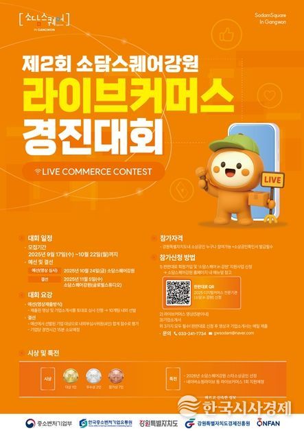 한국시사경제 이정이 기자 | 강원특별자치도는 도내 소상공인의 온라인 마케팅 역량 강화를 위해 소상공인이 직접 참여하는 '제2회 라이브커머스 경진대회'를 개최한다고 밝혔다.