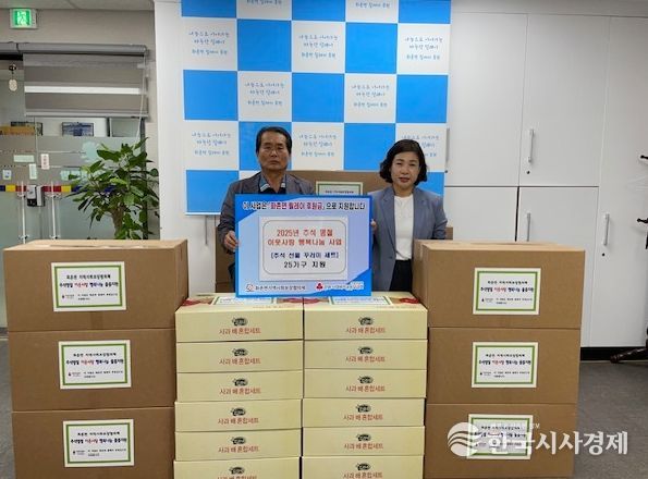 한국시사경제 문화팀 | 화촌면 지역사회보장협의체(공공위원장 박정임 화촌면장, 민간위원장 강은수)는 9월 17일 오전 10시 화촌면 행정복지센터에서 '2025년 추석명절 이웃사랑 행복나눔 사업'의 일환으로 관내 저소득 취약가구 25가구를 대상으로 추석 선물 꾸러미( 과일세트, 샴푸·비누 등 생필품, 참치캔·식용유 등 식료품)를 지원하는 전달식을 개최했다.