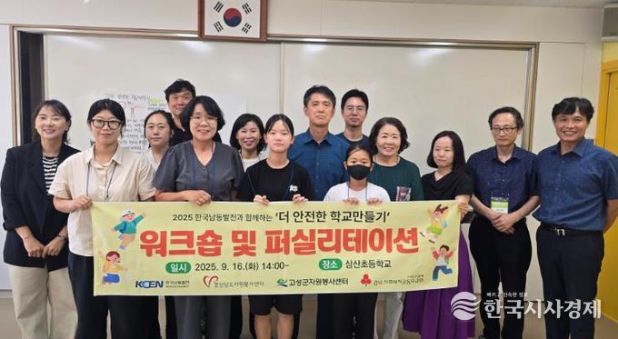 한국시사경제 윤광희 기자 | 고성군은 9월 16일 삼산초등학교에서 학교 관계자와 안전점검 및 실태조사단 20명이 참석한 가운데, 도우미(퍼실리테이션) 기법을 활용한 2025 한국남동발전과 함께하는 ‘더 안전한 학교만들기 워크숍’을 진행했다고 밝혔다.