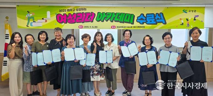 한국시사경제 윤광희 기자 | 고성군은 9월 16일 고성군여성친화공간 담소랑에서'2025년 배우고 성장하는 여성리더 아카데미'수료식을 개최했다.